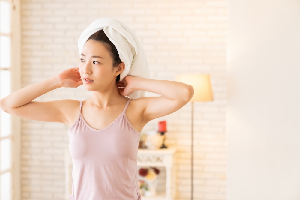 入浴後に首周りの筋肉をほぐし、身体のめぐりを良くして自律神経のバランスを整えるストレッチです。